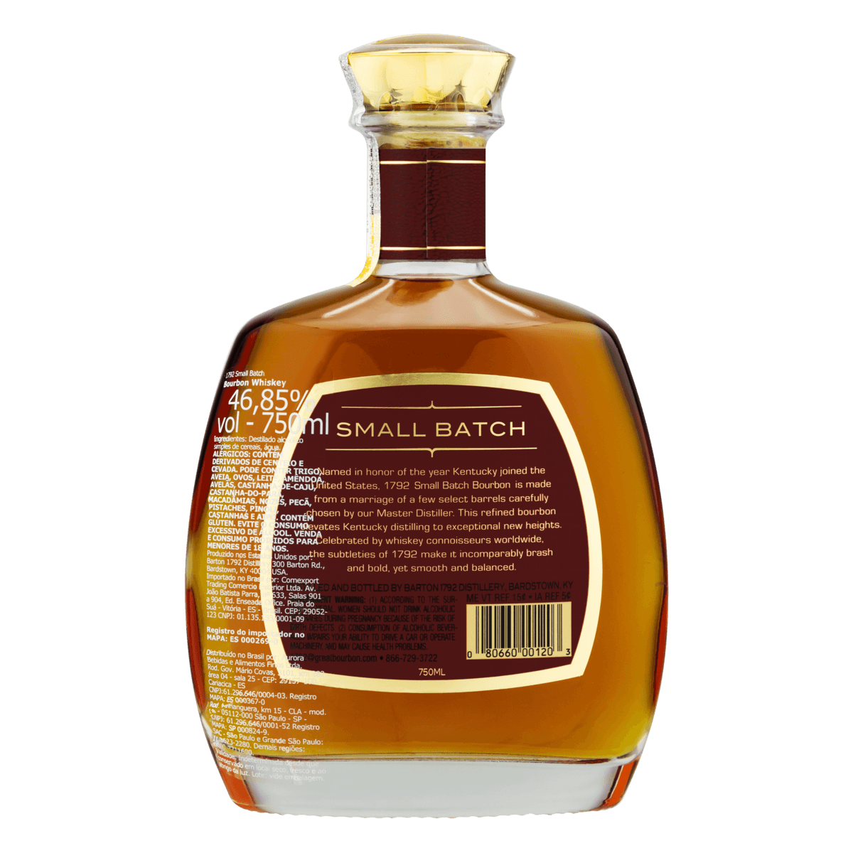 1792 Small Batch é produzido na histórica destilaria Barton 1792, localizada em Bardstown, no estado do Kentucky. Produzido artesanalmente com o melhor milho, centeio e cevada maltada, 1792 Small Batch apresenta uma exclusiva mash bill de alto teor de centeio. Tem um perfil de sabor expressivo e elegante. Notas picantes do centeio se misturam a notas de caramelo e baunilha, criando um perfil complexo, porém equilibrado e suave, levando o sabor do whiskey a novos patamares e sendo celebrado por apreciadores no mundo todo.